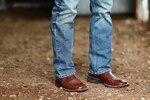 • Cut: The leg opening is straight, but slightly wider to fit work boots + cowboy boots.